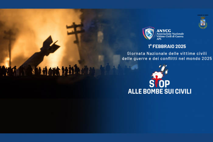 Sabato 1° febbraio 2025 Cento illumina la Rocca di blu per dire “Stop alle bombe sui civili”