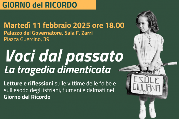 ...Letture e riflessioni sulle vittime delle foibe e sull'esodo degli istriani, fiumani e dalmati - Martedì 11 febbraio ore 18.00 presso Palazzo del Governatore...